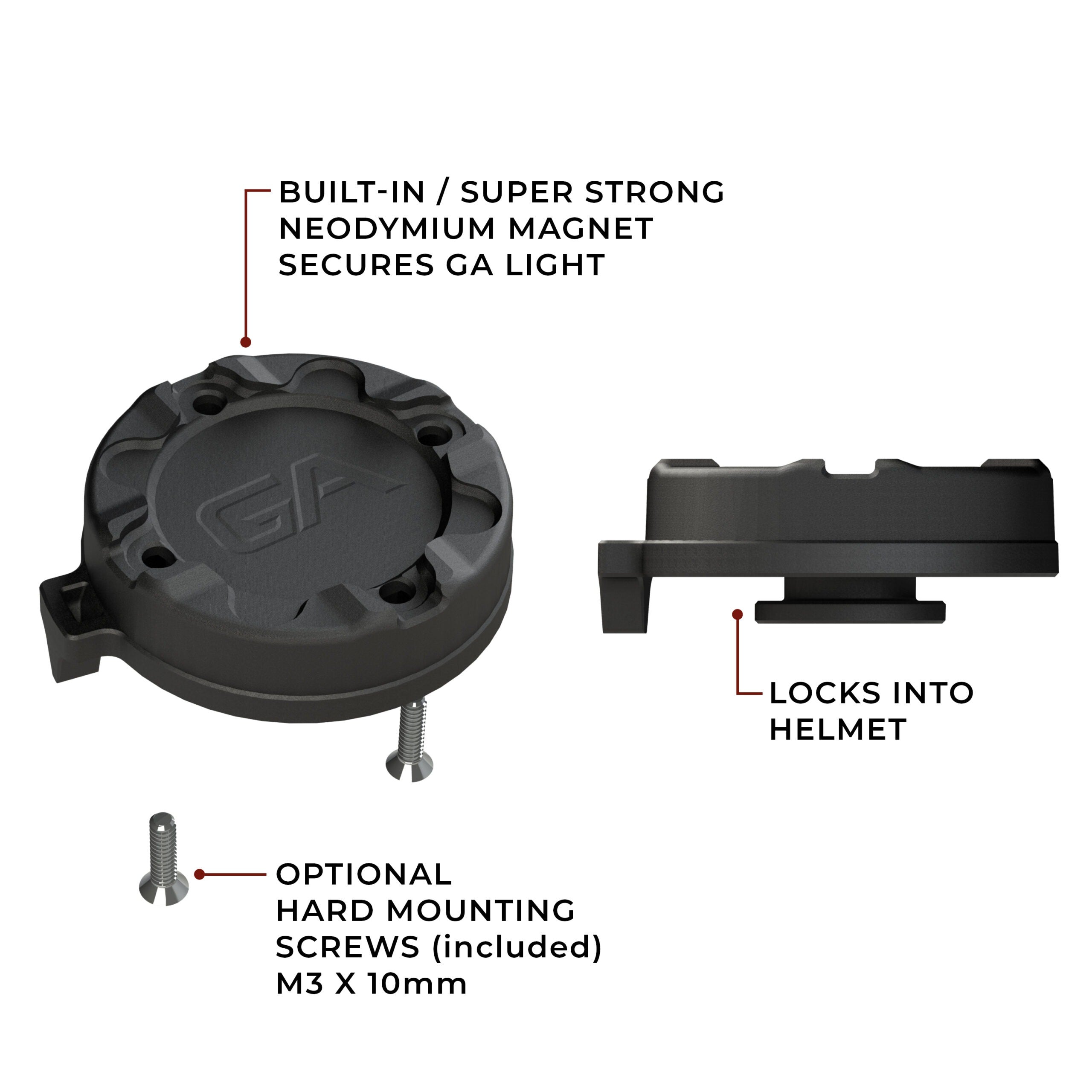 • Can be hard mounted to any Guardian Angel device via two M3 x 10mm screws (included)